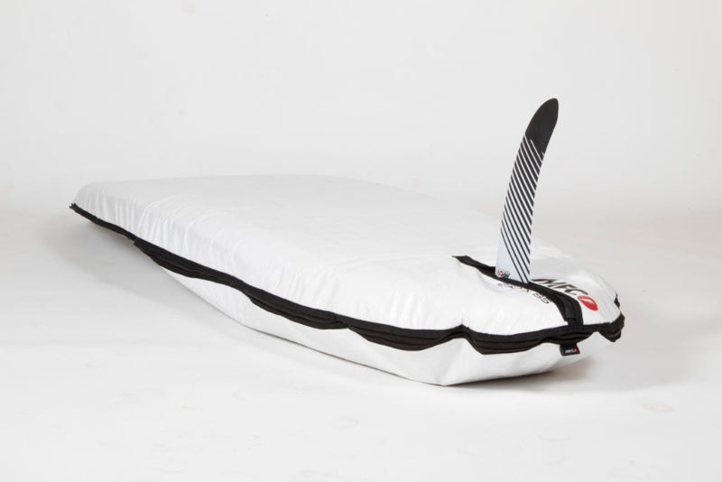 MFC DayLite single board bag is a 4mm padded full reflective 180gr White Tarpee bag ideal for everyday use. It has been designed for protecting your board while commuting to your spot in the roof rack or at the back of your car. It is especially thought to protect from long exposures to the sun and minor bumps and scratches. Fitting your board lose, think of this bag as your easy to go protective cover for your daily use. *Shoulder strap needs to be bought separately.